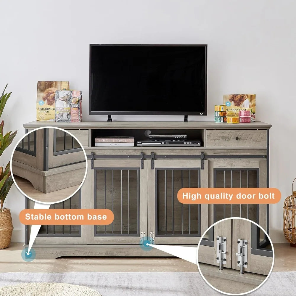 Dog Crate Furniture combines clever design with practical pet care. This 66" long, heavy‑duty wooden kennel is engineered to blend seamlessly with living spaces, serving as a secure home for two medium dogs while doubling as a sturdy end table or TV stand.