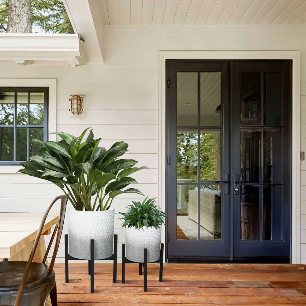 Plant Pot with Stand 10 & 12 Inches delivers a decorative honeycomb gradient planter with a built-in holder for easy placement in any space—indoors or outdoors. This modern design combines style and practicality, making it ideal for living rooms, patios, or offices.